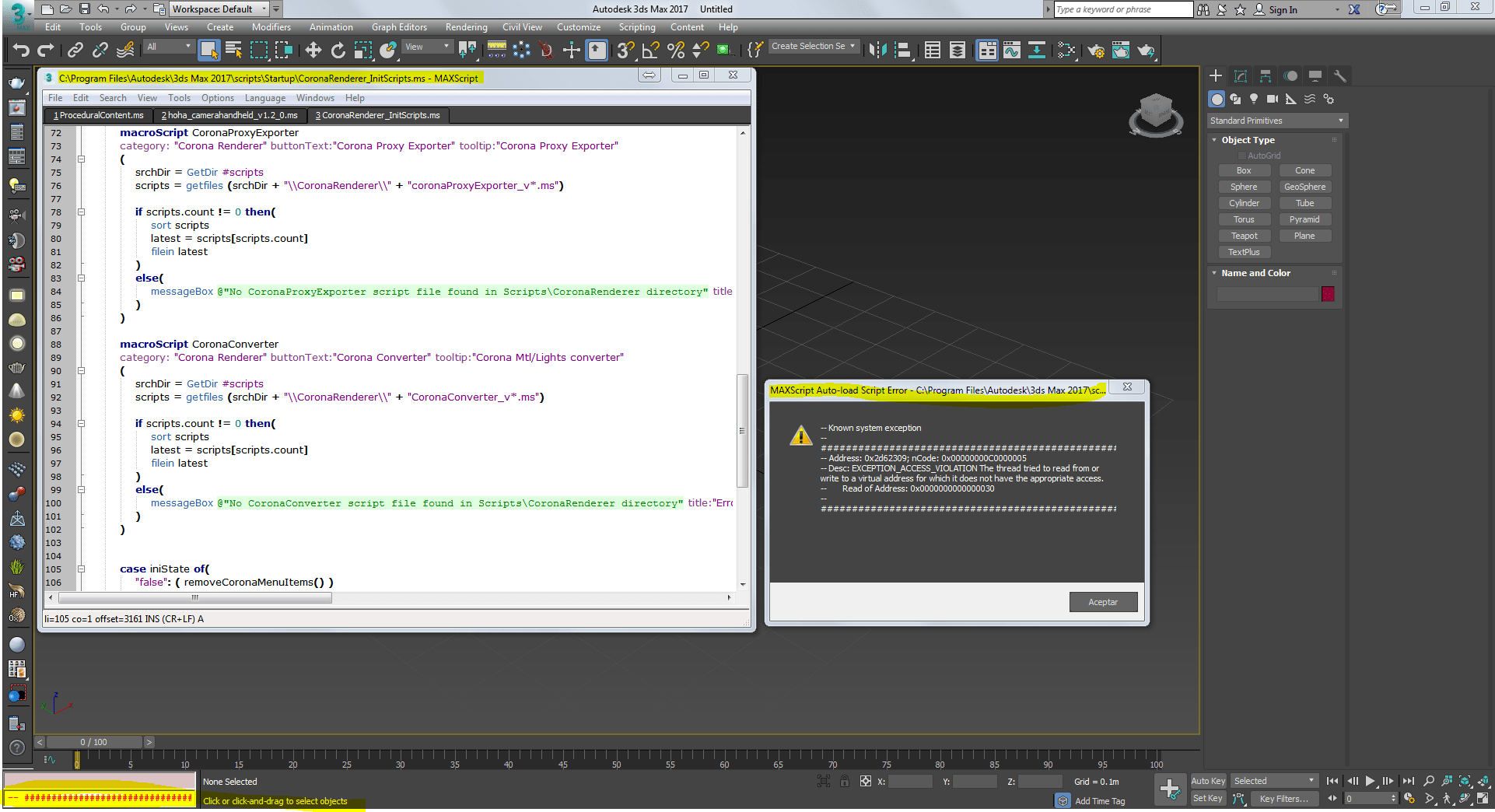 At end of script, expected end of string. Configuration problems can be the underlying cause of such errors, hence the suggestion of clearing them (which is what the instructions in that link do). How to render point clouds in 3ds max 2018 and more recent versions; 24.02.2020 · should the errors continue, it may be necessary to perform a clean uninstall of 3ds max. Reset 3ds max using the steps outlined in the following article: Should the errors continue, it may be necessary to perform a clean uninstall of 3ds max. How to export redway red files from 3ds max; Resetting 3ds max / 3ds max design to default user settings. Call needs function or class, got: Corrupted 3ds max user preferences... Corrupted 3ds max user preferences.